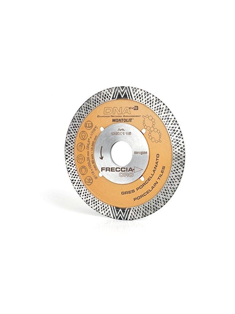 Diamantno rezilo CGX je idealna in profesionalna rešitev, ki jo je zasnoval Montolit za doseganje odličnih zaključkov pri suhih in mokrih rezih keramike in porcelana. Zasnovan s tehnologijo DNA, ki omogoča, da imajo rezalni deli plošče enako količino diamantnih zrnc in s tem enako učinkovitost rezanja.